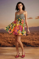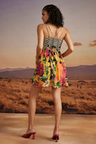 The Marca Mini Dress in mustard is your go-to choice for sunny days. This floral-printed dress exudes vibrance and is crafted from viscose georgette.