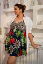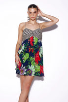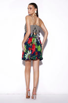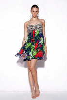 Floral printed mini dress.