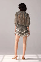 Add an edge to your wardrobe with our checkered printed mini skirt, featuring delicate lace detailing and layered, divided panels.