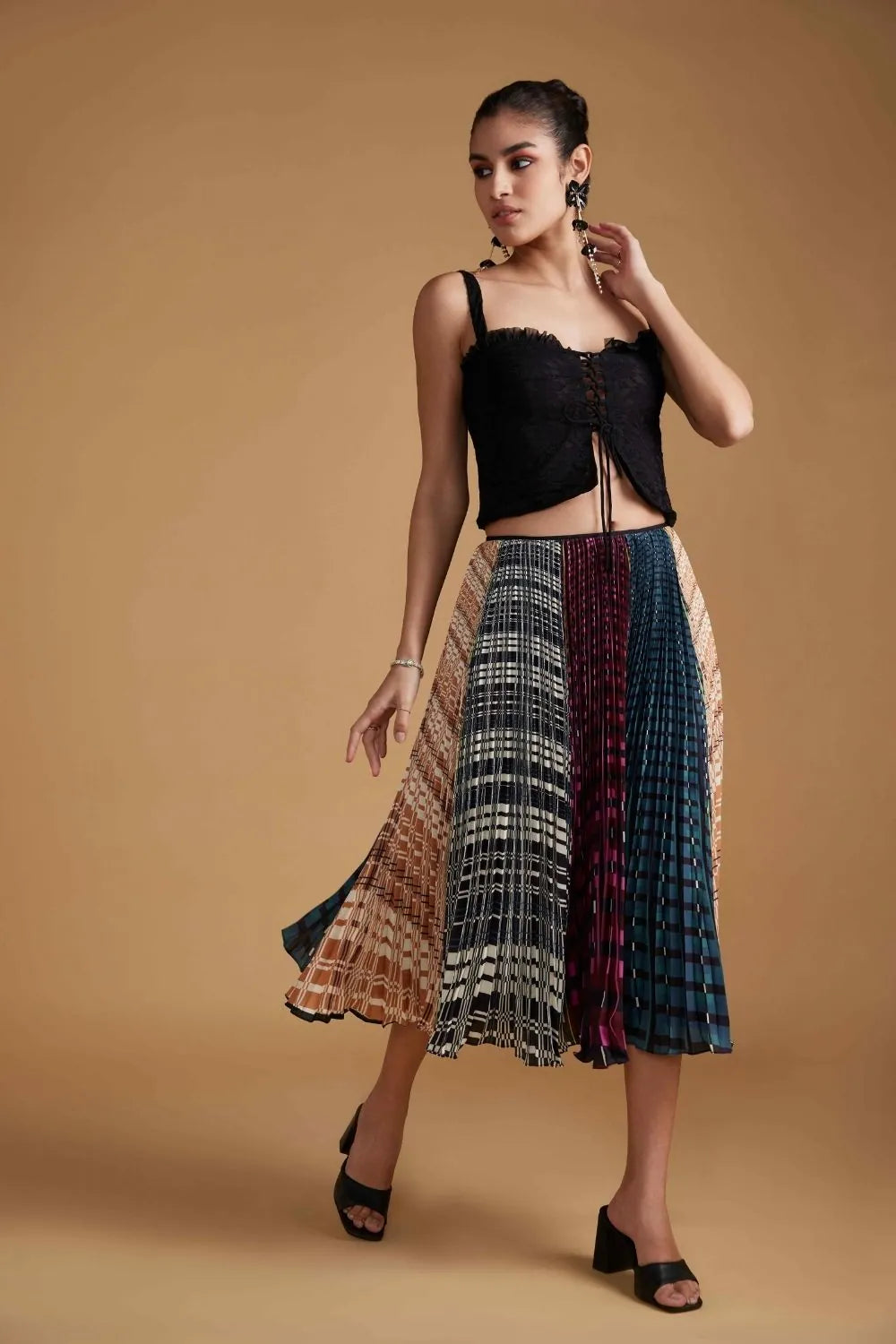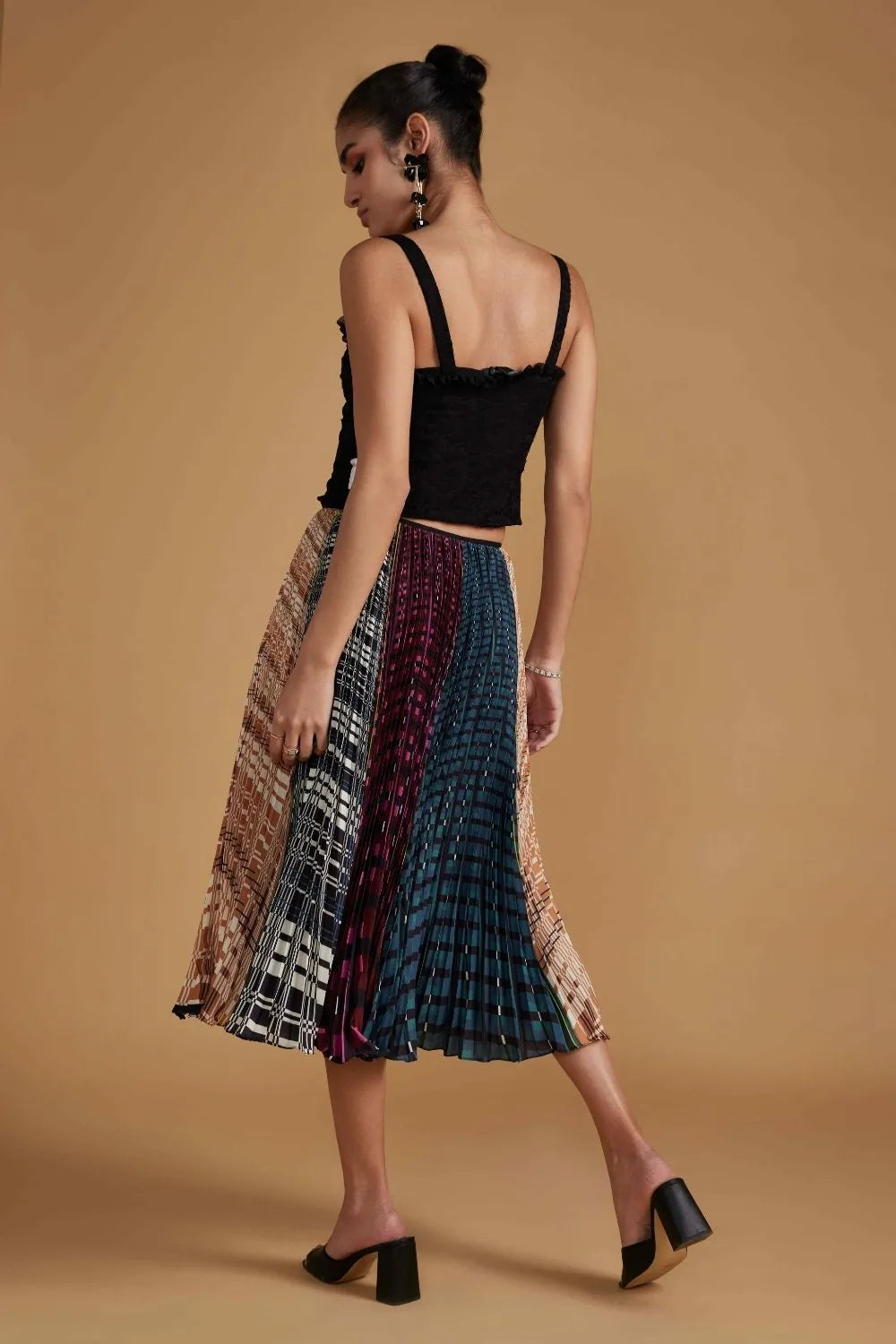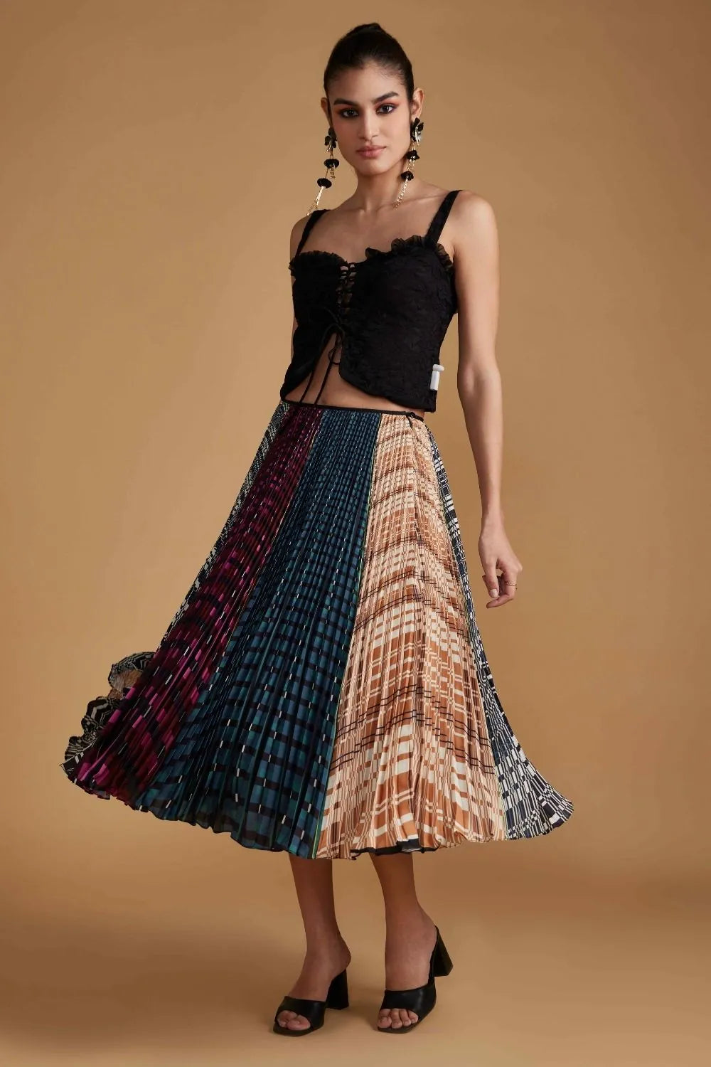 Pleated midi multi colour circle skirt.