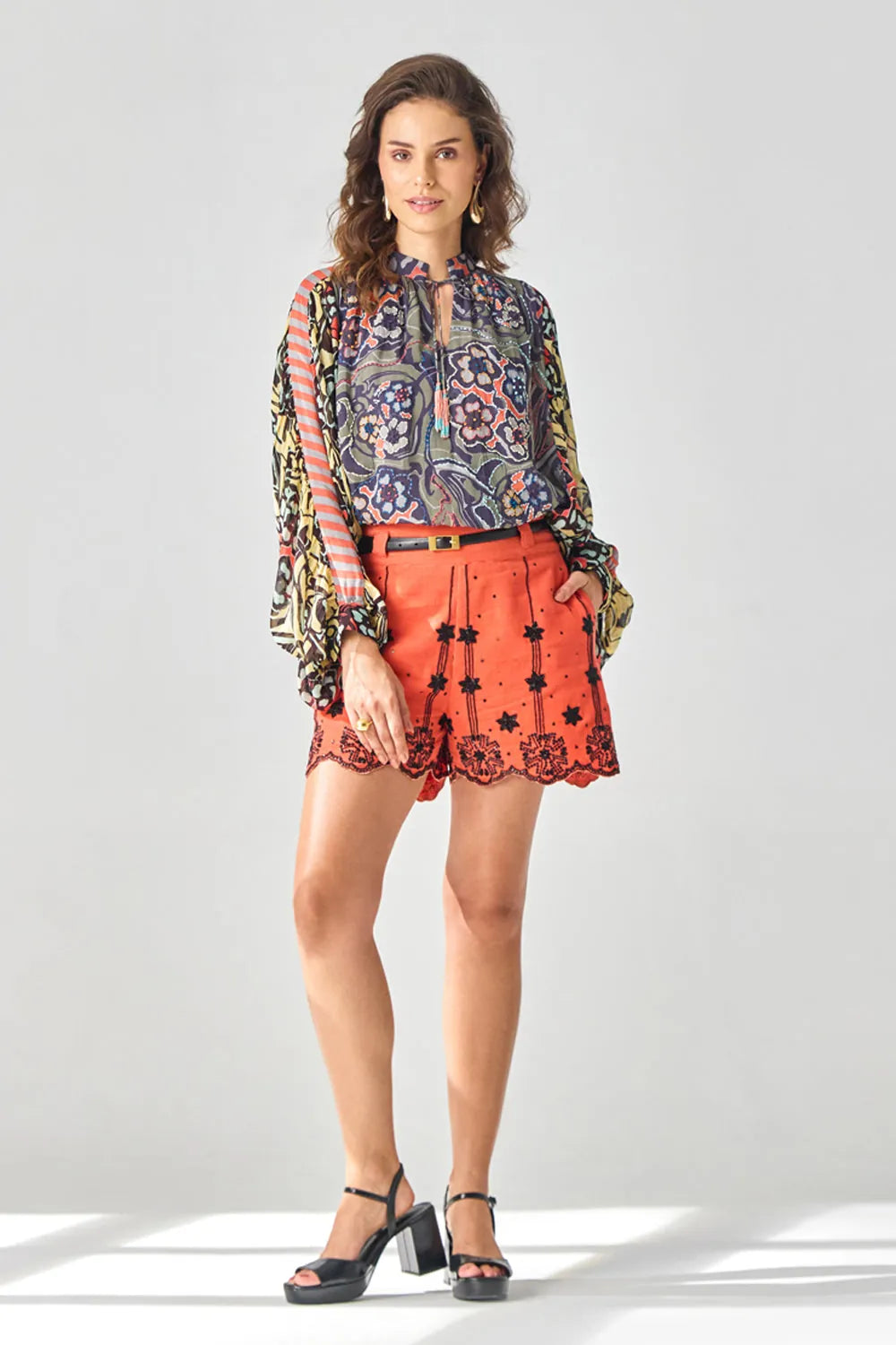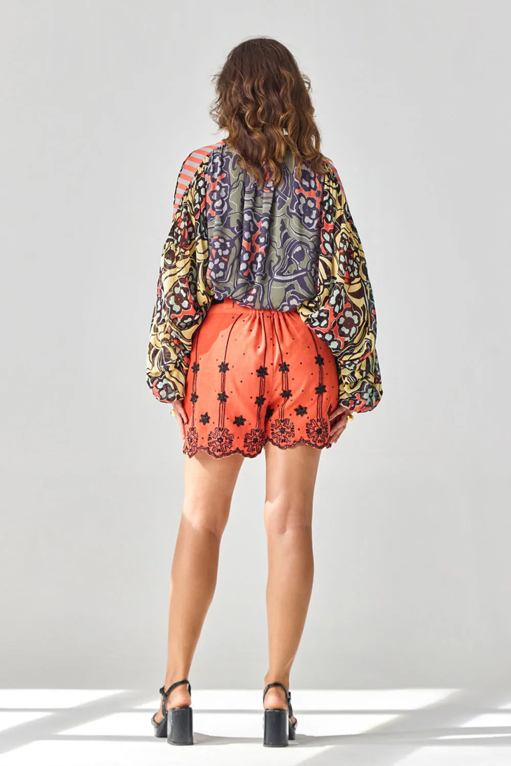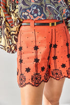 Stay party-ready and playful in these beaded floral cotton shorts featuring a flattering waist tie-up detail and convenient pockets.