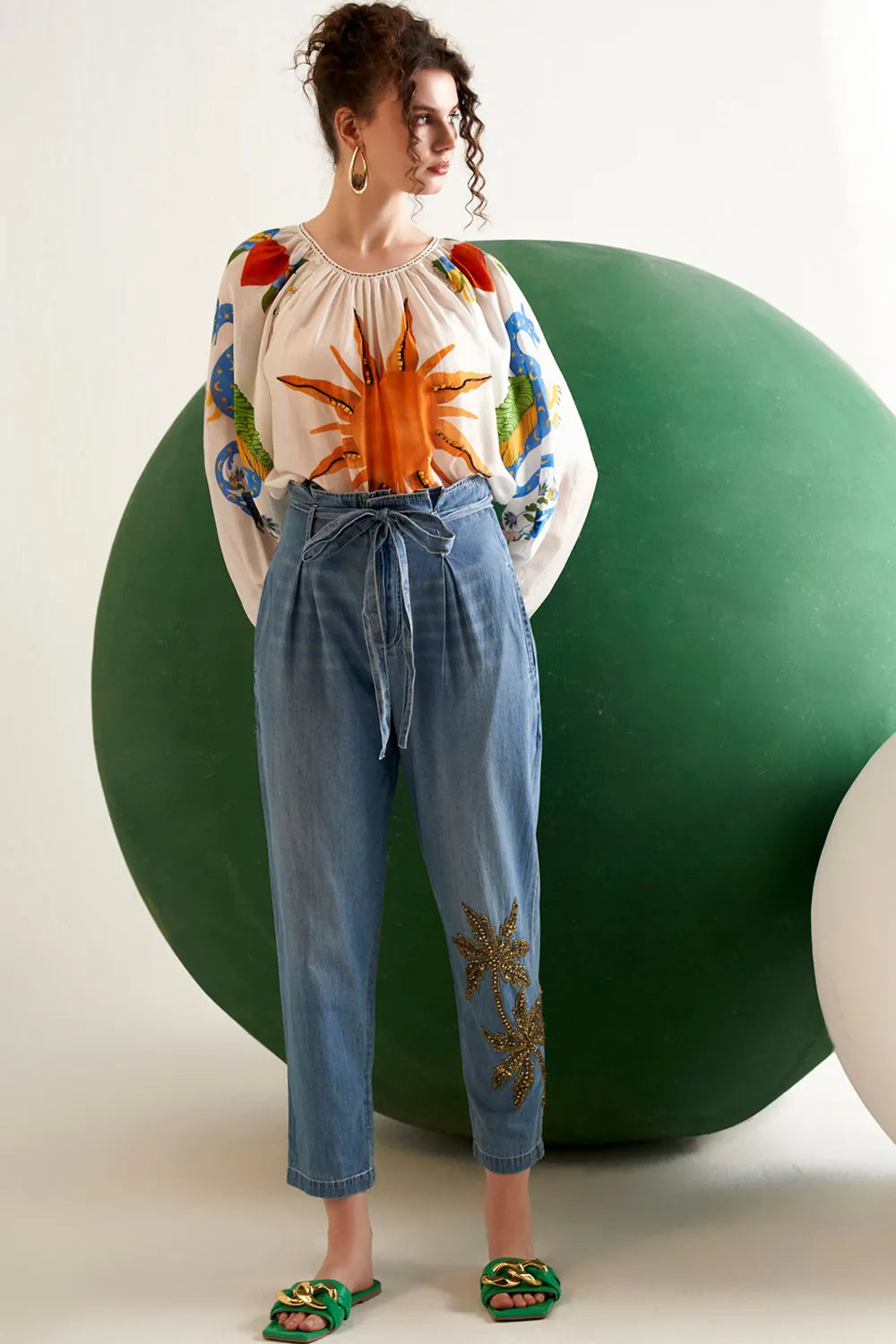 Ivory sun printed stone detailing blouse.