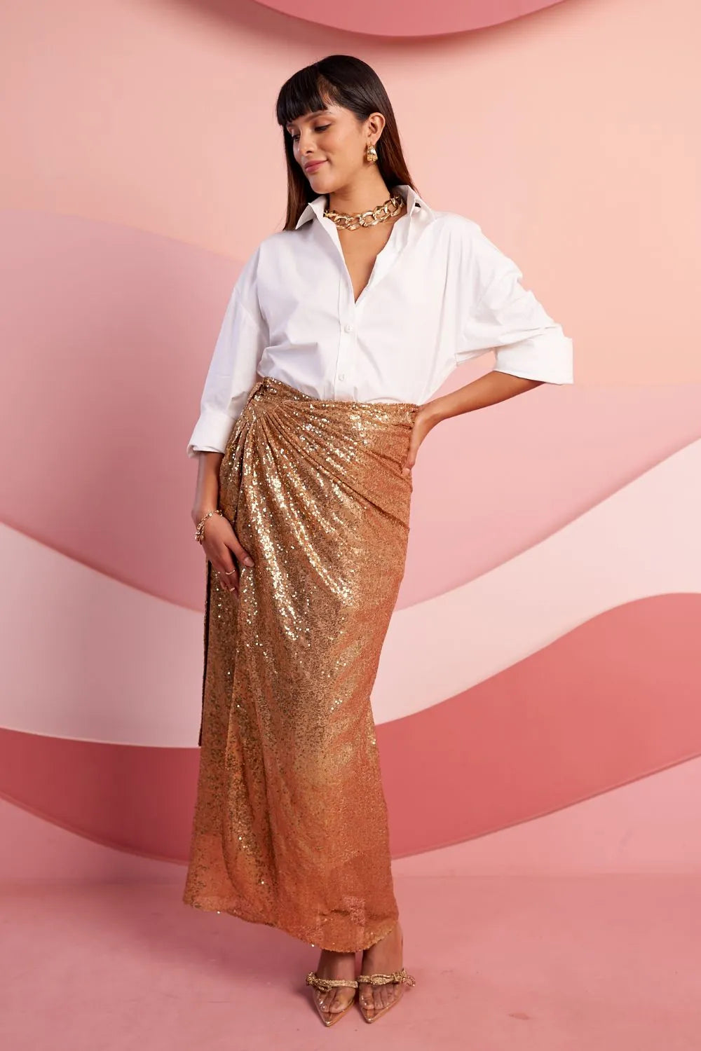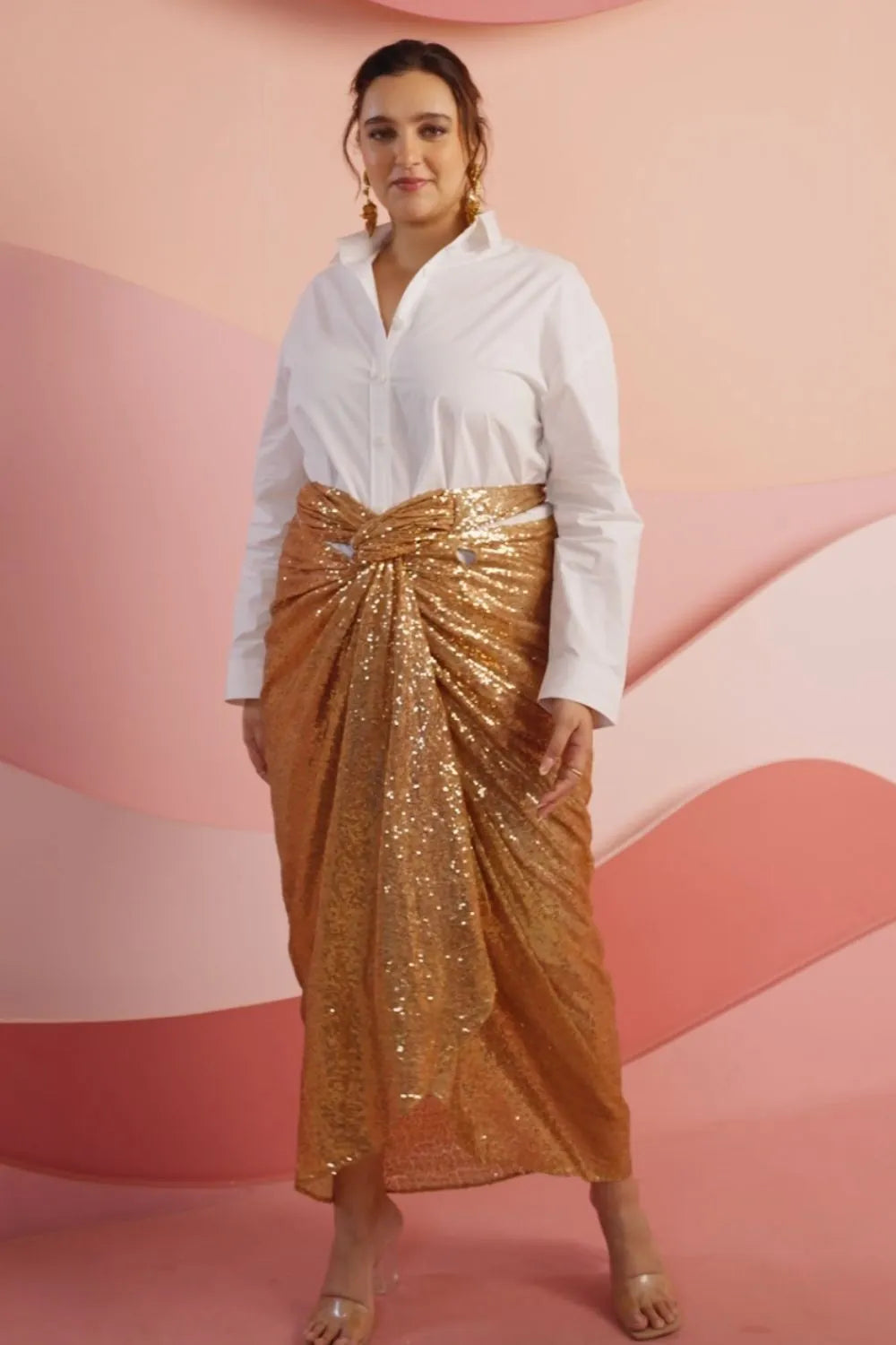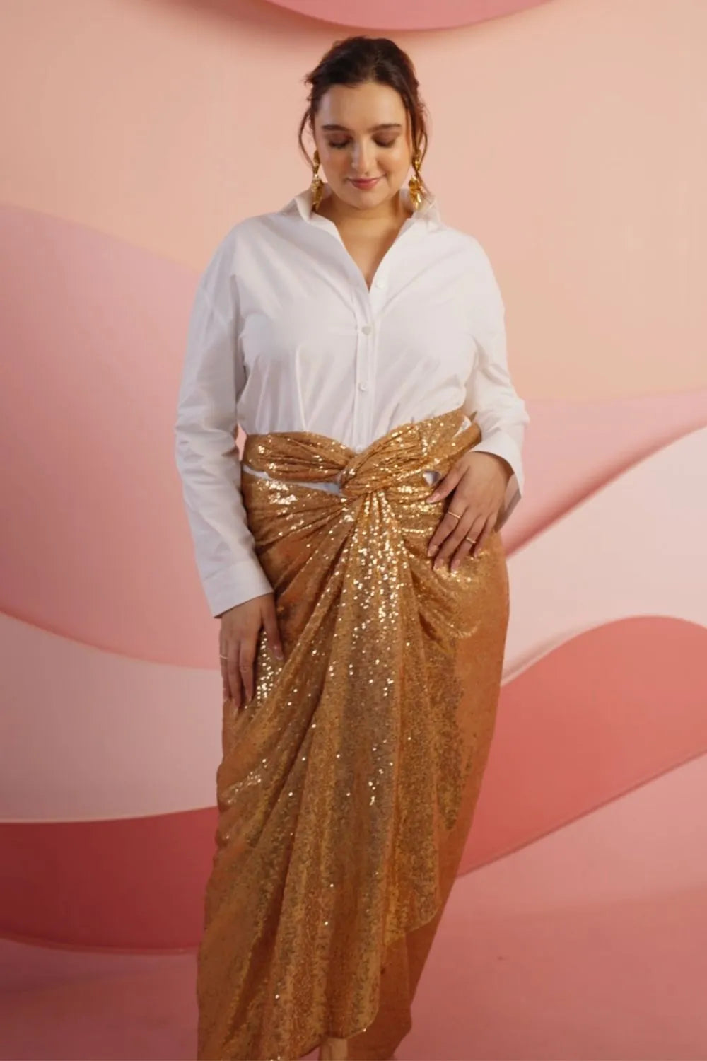 Fully sequinned wrap skirt that can be worn in 4 ways- two kinds of skirts and two ways in a dress.