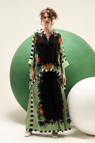 Black Checkered animal Printed cape blouse with pajama pants.