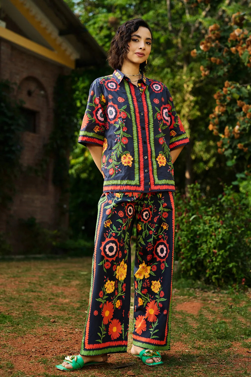 This one-size black embroidered shirt with slouchy shoulders exudes effortless elegance. The delicate embroidery adds a unique, artistic touch, while the relaxed fit creates a flattering, contemporary silhouette. A statement piece perfect for elevating your everyday style. pairing it with stylish pants in same prints gives it a complete look