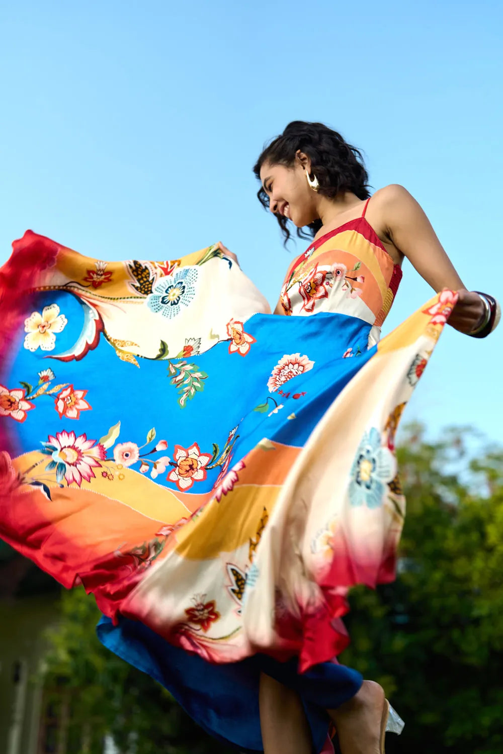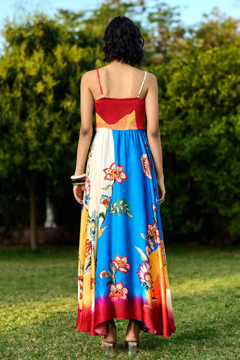 Effortlessly stylish, this spaghetti maxi dress features an engineered floral print, with an adjustable smocked back for a perfect fit. Ideal for holidays or casual day wear, it pairs beautifully with a light jacket for added versatility.