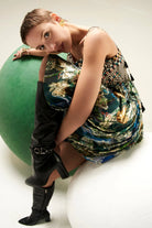 Get the best of floral print and a flirty mini dress in this lovely lurex beaut perfect for your vacay mood.
