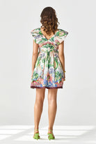 Turn heads in this flattering mini dress, featuring a chic print and a cinched waist that combines playful charm with a flattering fit.