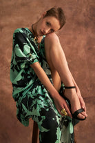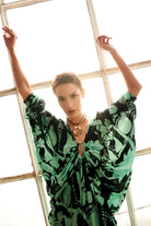 A two-tone kaftan dress with a sweet floral print for that easy-breezy charm.
