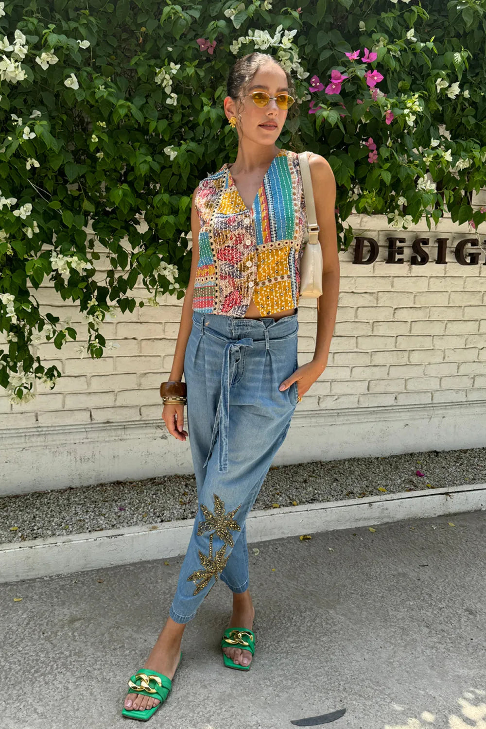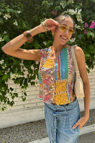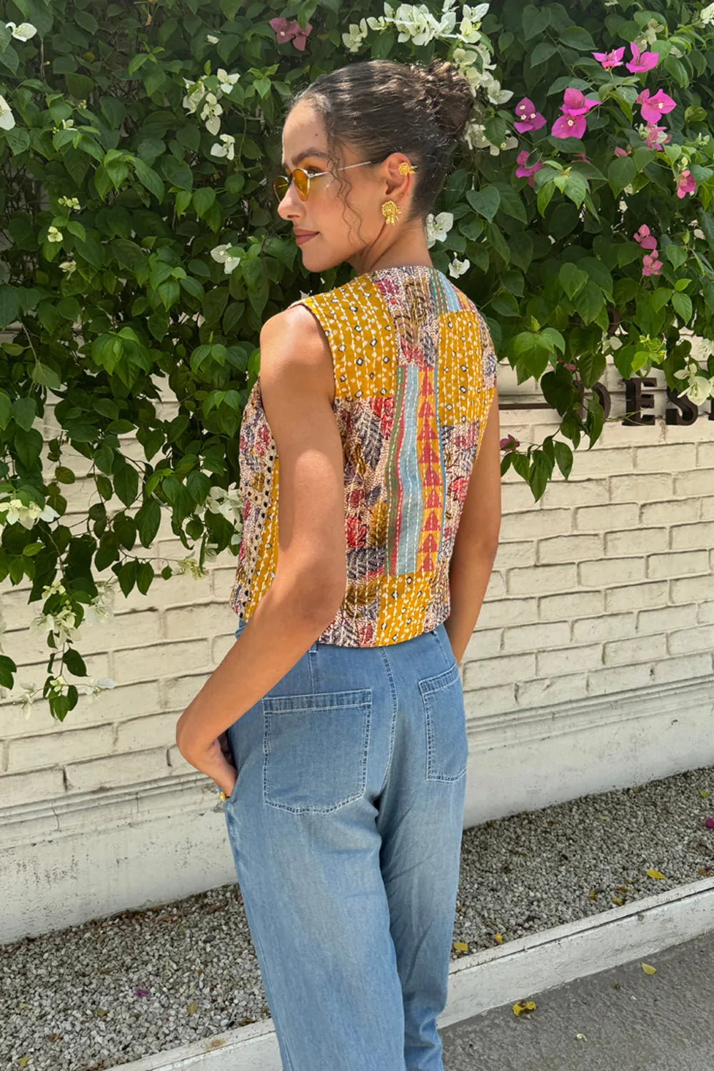 In our endeavour towards trying to be a zero-waste brand, we meticulously segregate and bundle all fabric scraps based on size, quality, print, colour, texture. These are then patched together and embroidered by women working from the comfort of their homes in villages. This helps provide employment and helps us minimise our carbon footprint. These are then skilfully refurbished and sewn together at Verb to create unique jackets and gilets. Released in limited capsules online or through pop-up events, proceeds of this jacket help in rehabilitation of women. Shop our sustainable jackets.