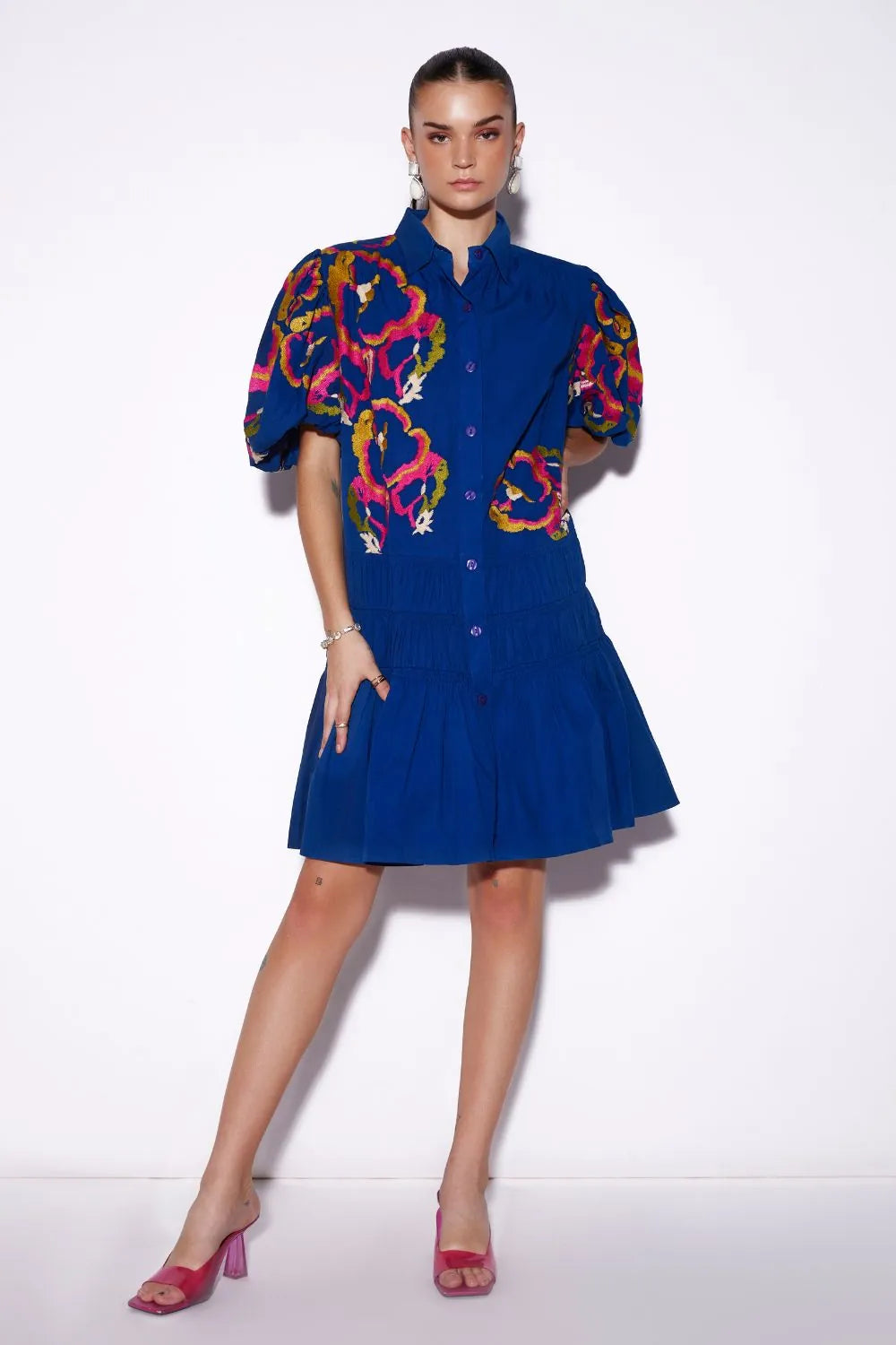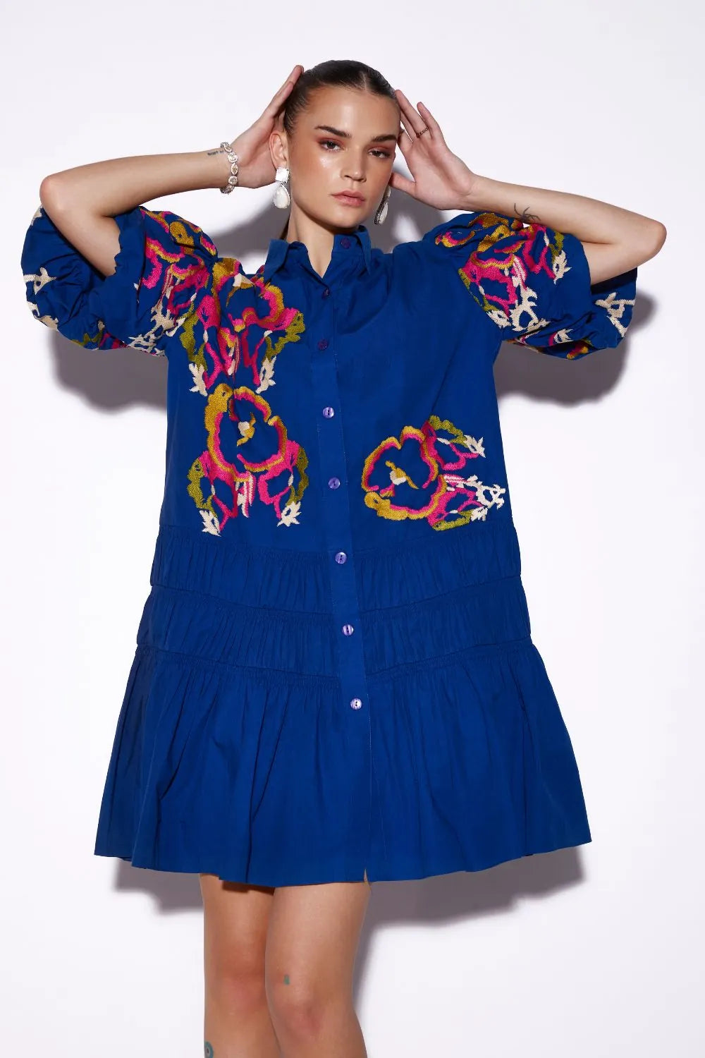 Thread embroidered shirt dress.