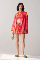 Go bold with our pink printed oversized shirt - a statement piece that combines comfort with contemporary flair.