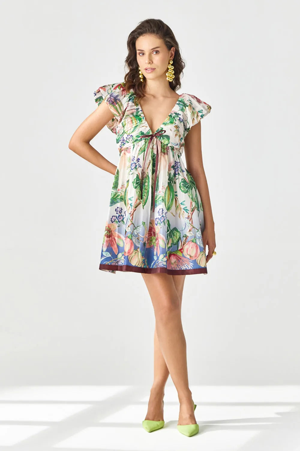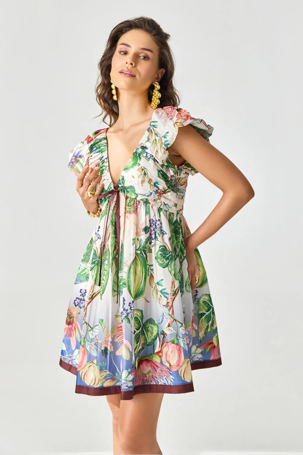 Turn heads in this flattering mini dress, featuring a chic print and a cinched waist that combines playful charm with a flattering fit.