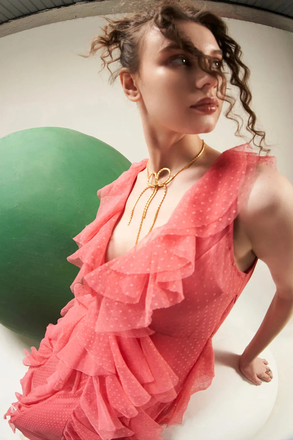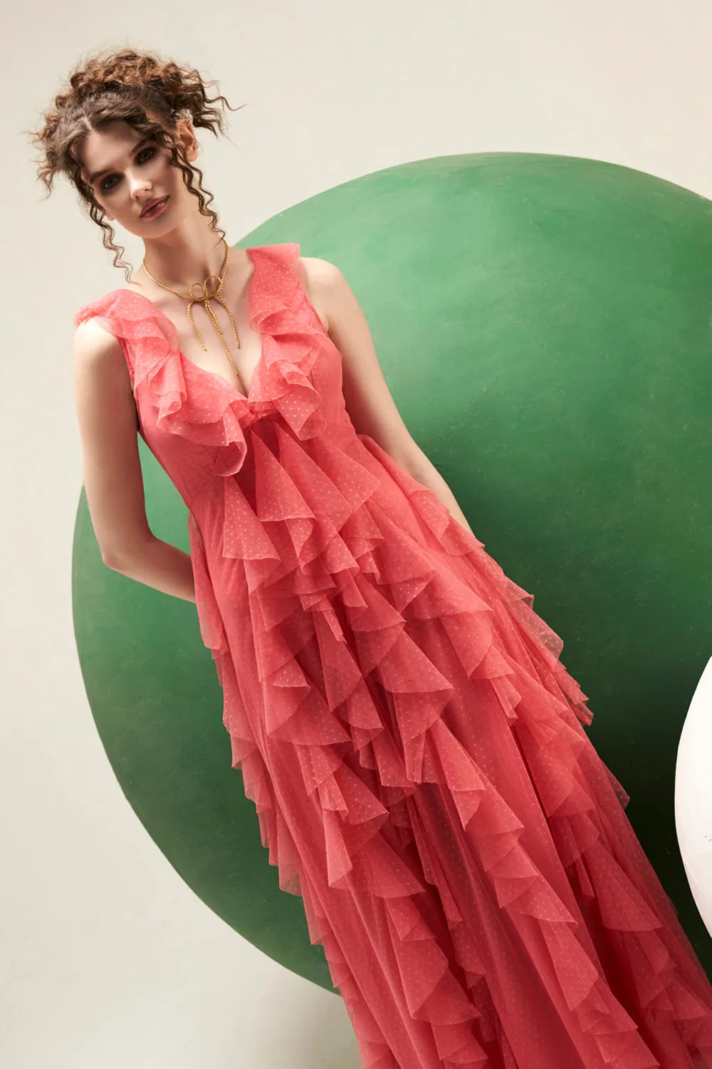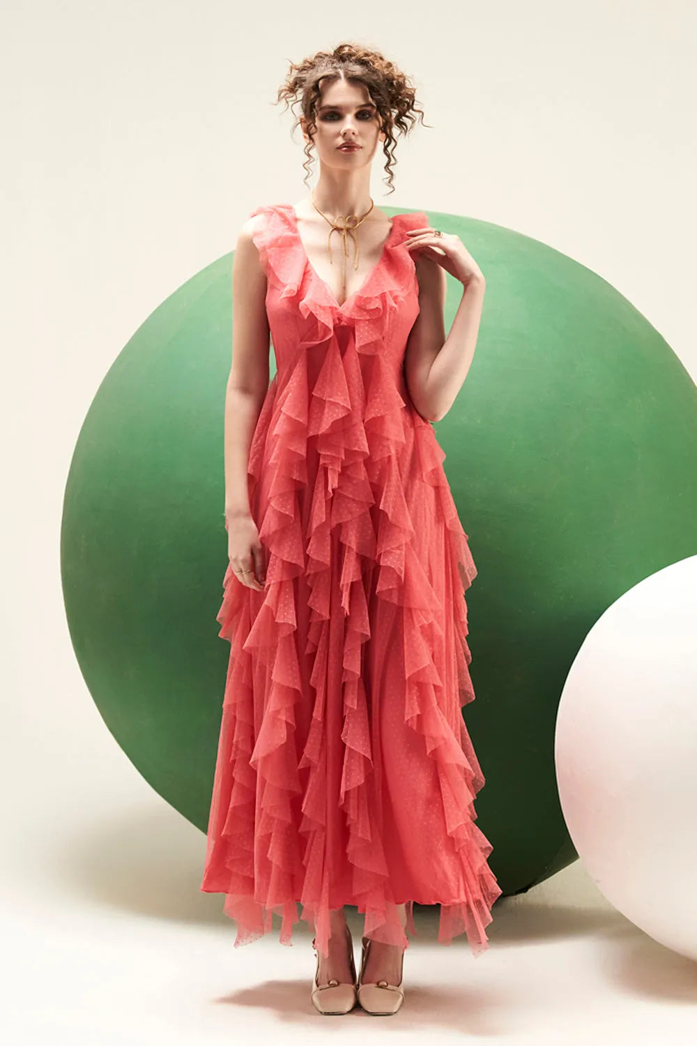 Dot tulle ruffle detailing maxi dress.