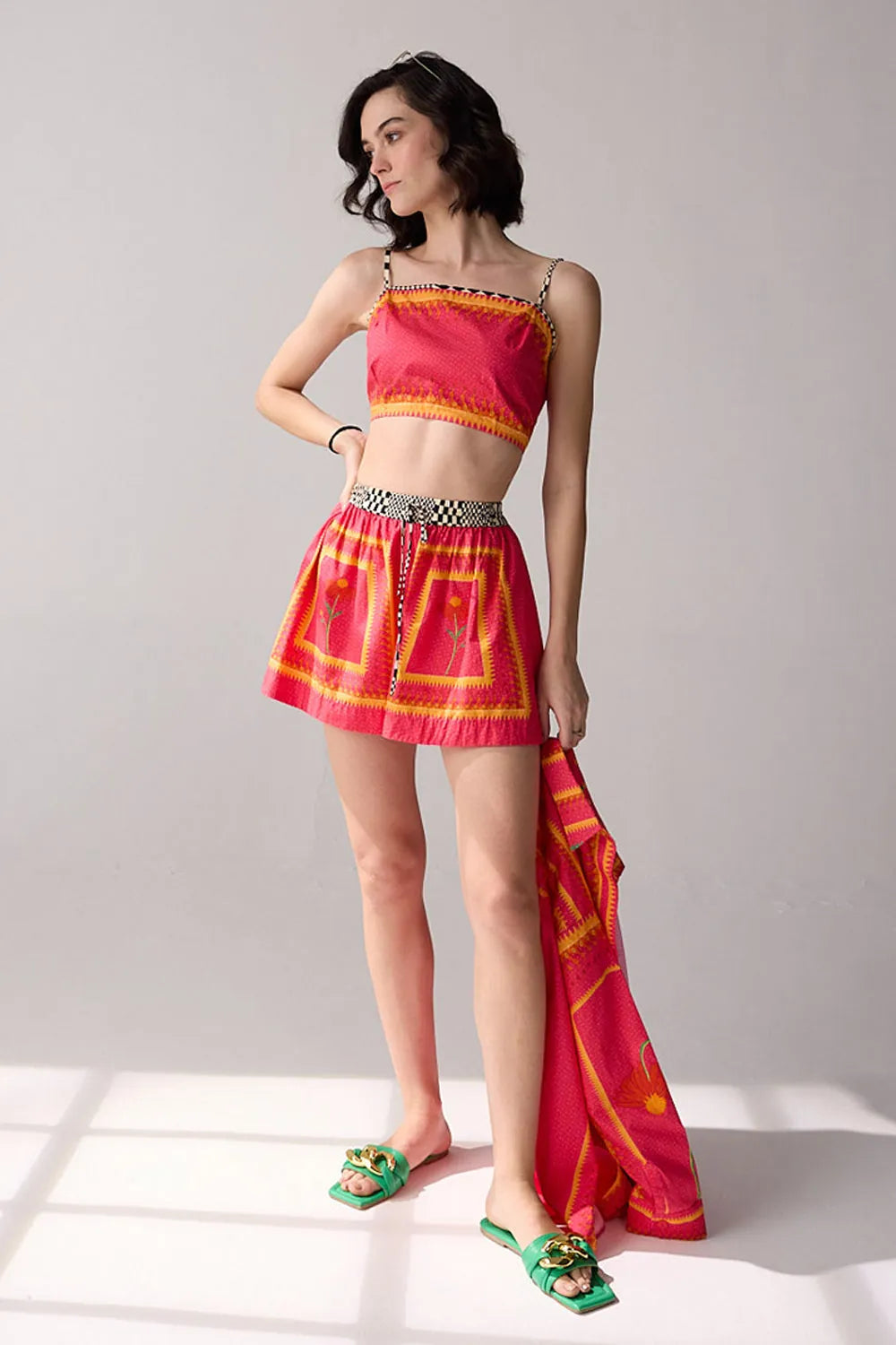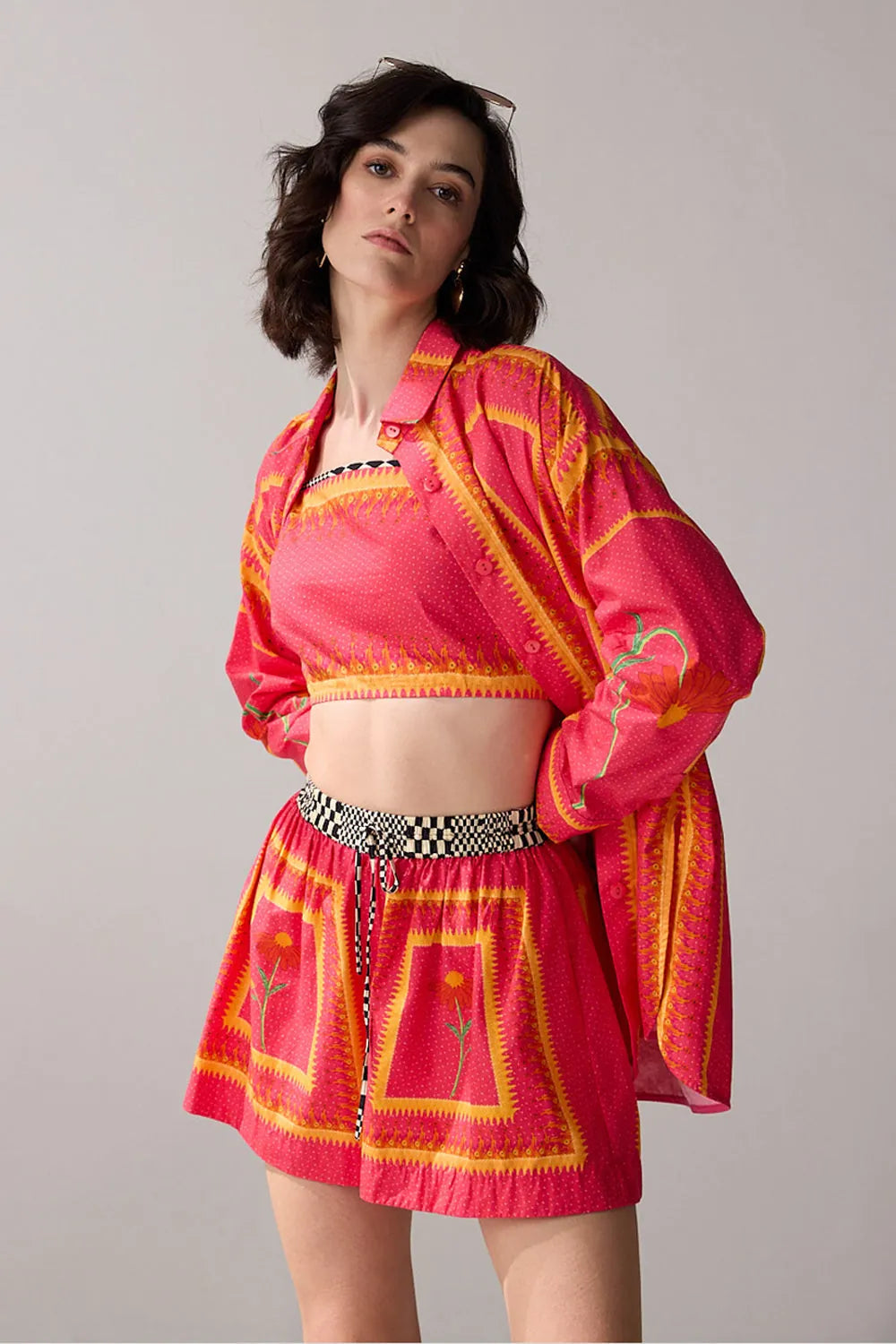 Add a fun, stylish touch to your casual outfits with our pink printed crop top, featuring a vibrant print and a flattering cropped silhouette.