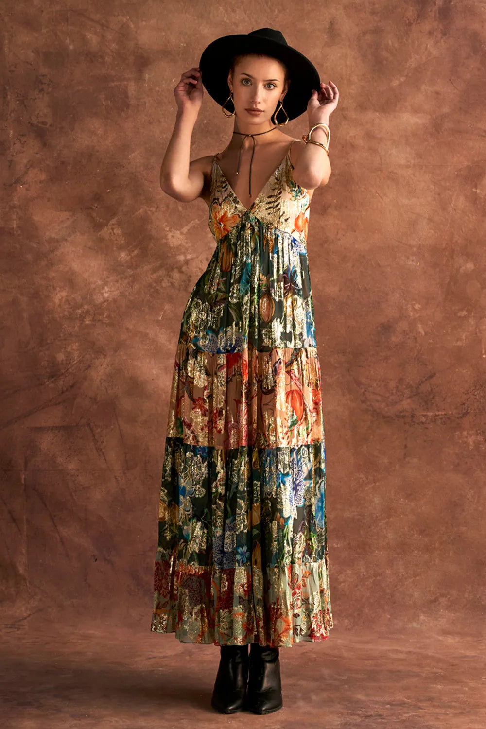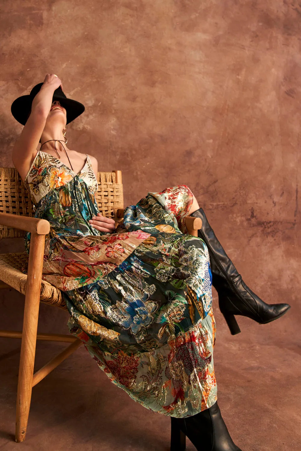 A mutli-printed jacquard dress with spaghetti straps, for the fashionista in you.