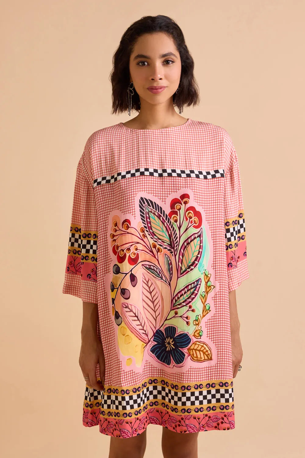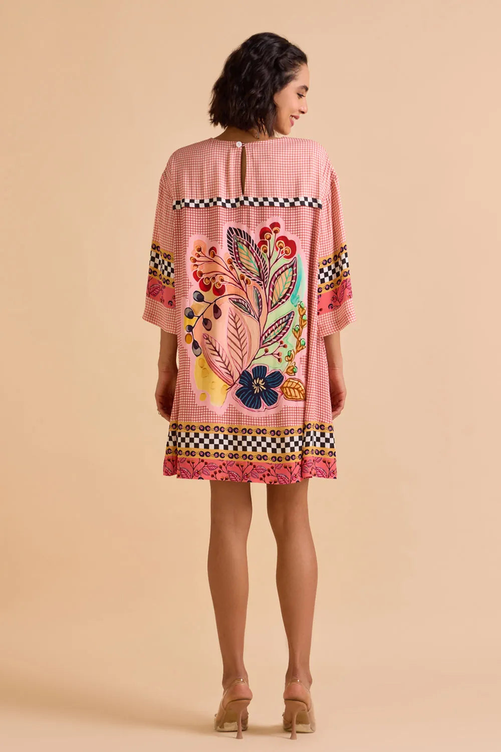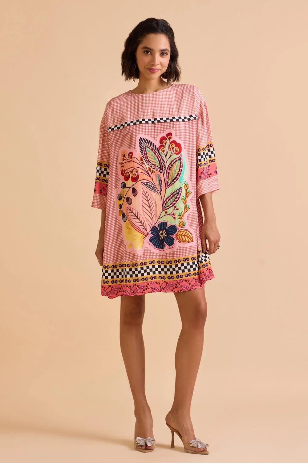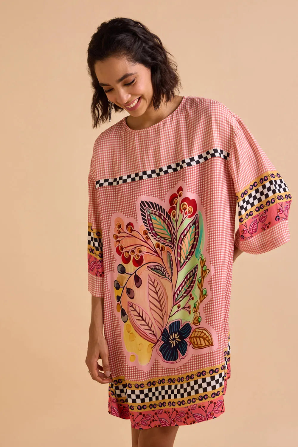 This one-size engineered printed shift dress fits comfortably from XS to XL, offering an easy, effortless wear. With its flattering silhouette and unique print, it’s the perfect go-to dress for any occasion.