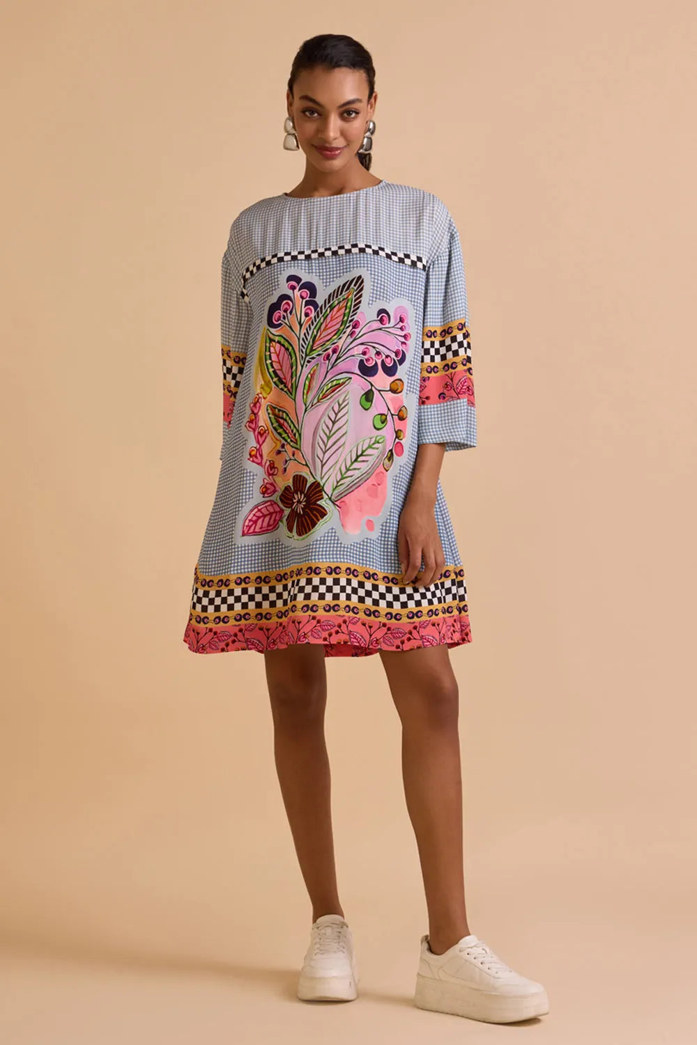 This one-size engineered printed shift dress fits comfortably from XS to XL, offering an easy, effortless wear. With its flattering silhouette and unique print, it’s the perfect go-to dress for any occasion.